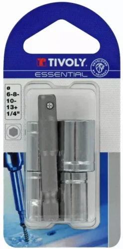 Lot De 4 Douilles TIVOLY Ø 6 à 13mm + 1 Porte-douille Hexa 6.35 Mm > 1/4″ – 11501420001