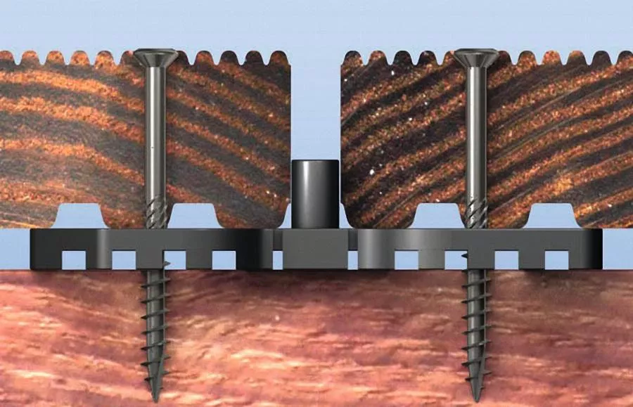 - Lâespaceur FTA-V permet une pose rapide et facile de lames de terrasse de toute largeur et de tout type de bois.