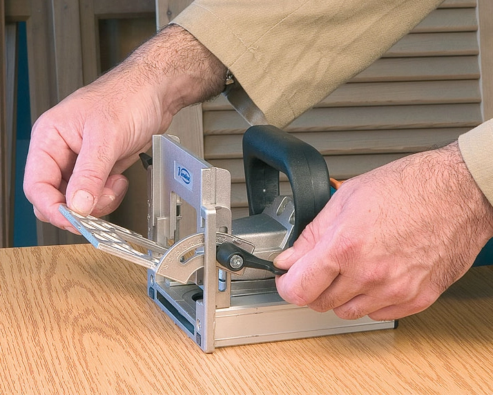 - Permet de réaliser des entailles standard pour lamelles Nº 0-10-20, soit à plat pour assemblage droit, ou degré par degré grâce à son patin inclinable et réglable en hauteur, autorisant la pose de la lamelle à l’emplacement choisi par rapport à l’épaisseur des bois à assembler.