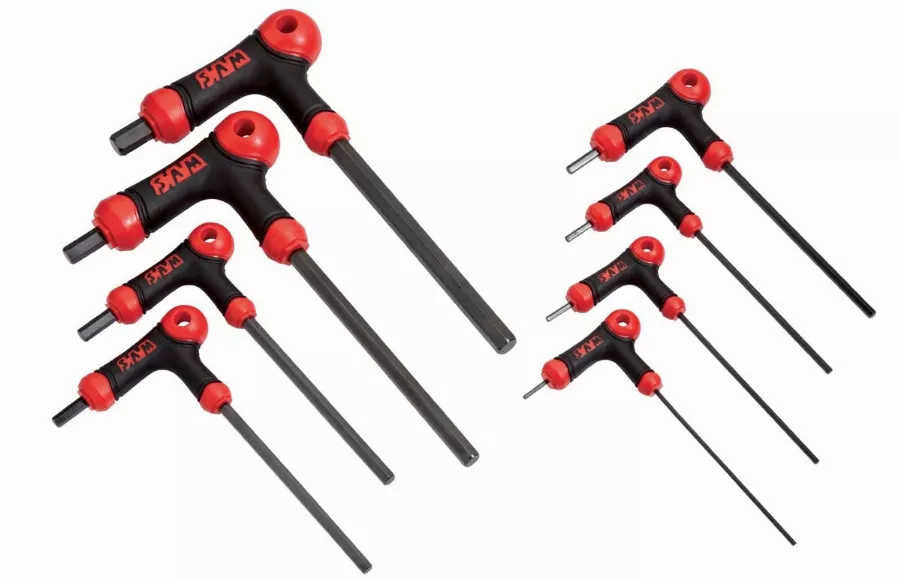 Jeu de clés mâles 6 pans tête sphérique à poignée.