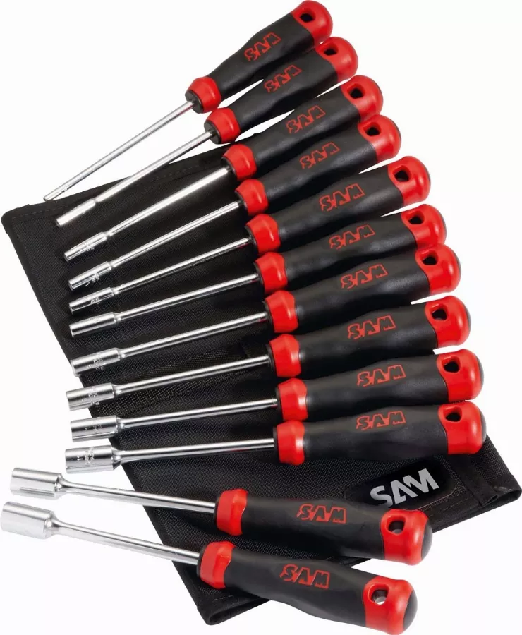 Trousse de 12 clés à douilles emmanchées pour vis à accès limité.