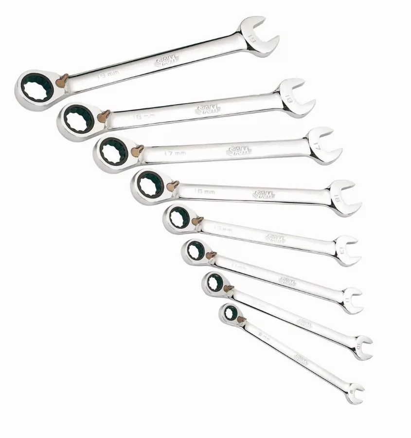 Jeu de 8 clés mixtes à cliquet 12 pans en mm.