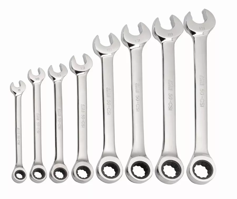 Jeu de 8 clés mixtes à cliquet polie brillante en mm.