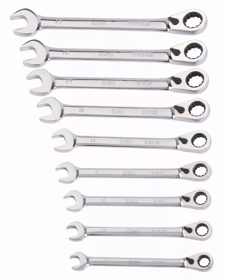 Jeu de clés mixtes à cliquet multi-empreintes.