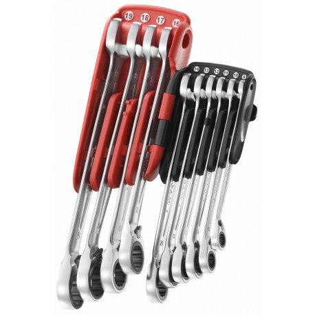 - Jeu de 10 clés mixtes standard à cliquet : 467.8 • 10 • 11 • 12 • 13 • 14 • 16 • 17 • 18 • 19 mm.