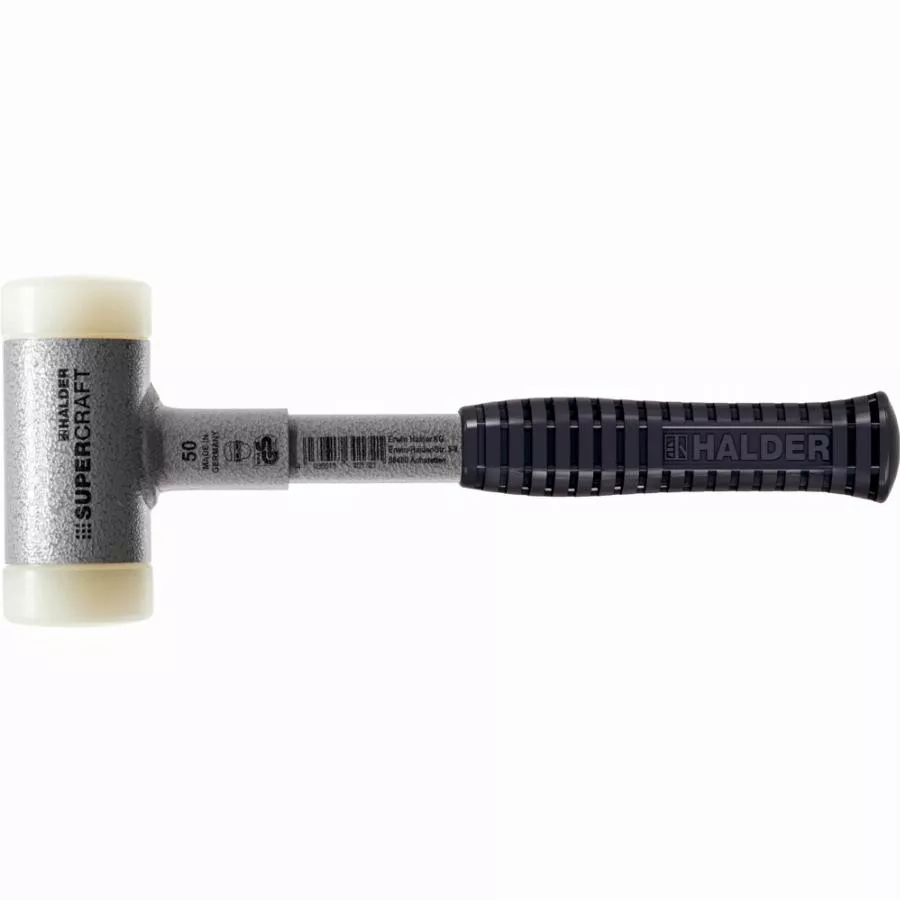 Le tube de tête des marteaux SUPERCRAFT est rempli de grenaille d’acier. Ainsi, lorsque l’embout frappe une pièce, la garniture de grenaille suit en décalé. La réduction du rebond optimise la force de frappe. Par conséquent, des frappes très puissantes sont possibles. De plus, l’utilisation des marteaux SUPERCRAFT est nettement plus sûre, elle protège et soulage les articulations et réduit le bruit par rapport aux marteaux classiques.