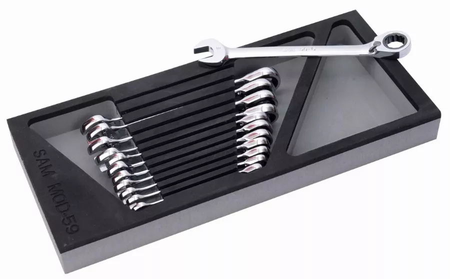 Jeu de 12 clés mixtes à cliquet.