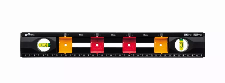 - L’électricien a souvent des difficultés à bien voir la fiole sur le niveau à bulles, notamment lors de l’installation de prises de courant au sol. Par ailleurs, lors du marquage, de laides entailles apparaissent fréquemment en raison des encoches au niveau de la fiole. Le niveau à bulle d’électricien de Wiha apporte désormais la solution à ces problèmes. Même en cas d’angle de vue aigu, une visibilité parfaite de la fiole est garantie. Et grâce à son boîtier continu, le niveau à bulles permet de tracer des lignes continues. Les échelles graduées au positionnement judicieux permettent un mesurage aisé même avec une vue du dessus. Les marquages de distance variables pour jusqu’à 4 boîtes d’encastrement constituent un autre avantage lors de l’installation électrique. Grâce aux points de marquage coulissants pour les boîtes, le niveau à bulle peut être ajusté aux écarts de marquage selon les diverses spécifications nationales et ainsi être également utilisé dans de nombreux cas et dans le monde entier. Grâce à sa forme compacte, il convient en outre parfaitement à l’utilisation mobile et se range facilement dans le coffret d’électricien de Wiha.