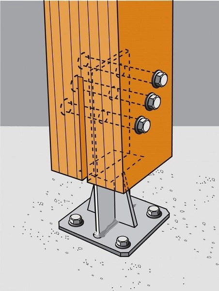 - 4. Le pied de poteau peut aussi être noyé dans le béton au moment où ce dernier est coulé.