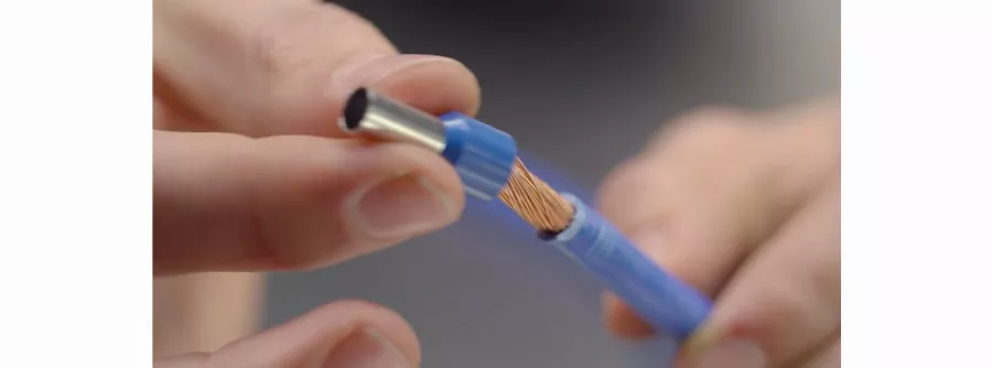 - Grâce au sertissage hexagonal, le coincement de petites cosses de conducteurs est exclu.