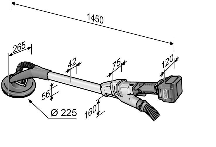 - Tête de ponçage reposant sur un cardan assure une flexibilité élevée et une adaptation optimale lors du ponçage de murs et de plafonds.
