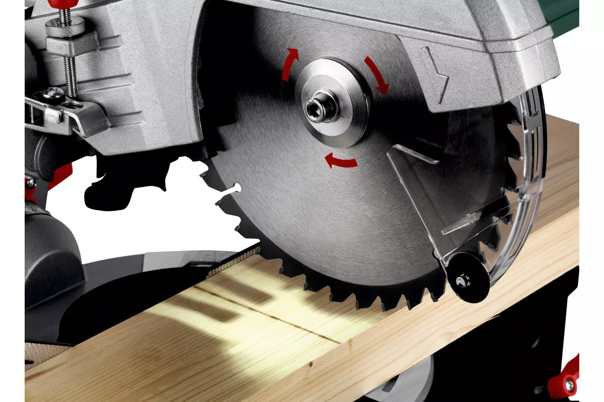 - Puissance de coupe élevée grâce au moteur universel extrêmement puissant et à la grande lame de scie
