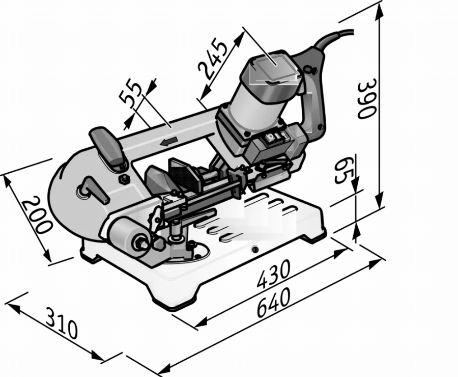 - Coupes possibles sans support : pour coupe droite 90°, coupe transversale ronde et carrée 80 mm maximum, coupe transversale rectangulaire 100 x 80 mm maximum.