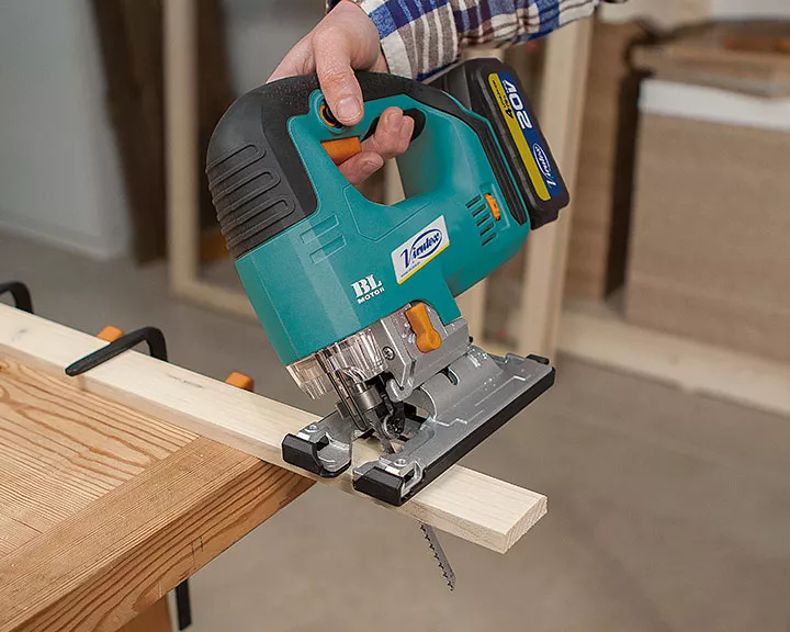 - Scie sauteuse Ă batterie compacte et puissante Ă©quipĂ©e dâun moteur sans charbons.